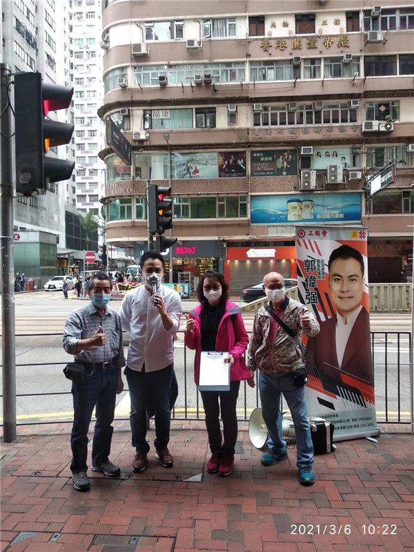 3月6日,新界葵青區議員郭芙蓉、盧婉婷、梁嘉銘開設街站收集市民簽名。