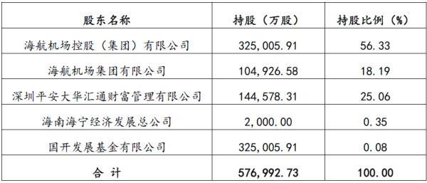 其中海航旗下的海航機場控股、海航機場集團分別持股56.33%、18.19%,合計持有74.52%。