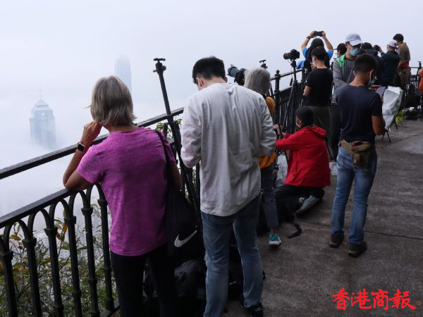 太平山頂的盧吉道是觀賞「霧漫香江」最佳位置,許多人都說這是世界級的都市奇觀,每當雲海出現就會吸引數百影友和遊客,一時間人頭湧動,腳架林立,等候捕捉雲海最美的一刻。(馮瀚文攝)