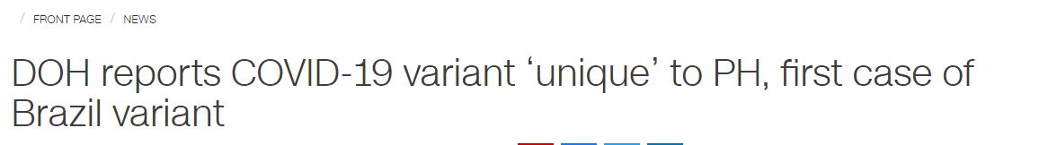 當地時間13日,菲律賓政府表示,該國衛生部發現了一種新型新冠變種病毒。CNN13日報道稱,根據菲律賓衛生部的說法,這種新型新冠變異病毒被命名為P.3。截至目前,菲律賓國內已登記了98例與這種變異病毒相關的病例。報道稱,菲律賓政府還需要更多關於該變異病毒的信息,以評估其傳染和死亡風險。