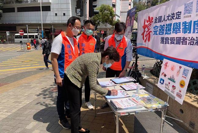 行政長官林鄭月娥今天(15日)到民記堅尼地城地鐵站街站簽名,撐完善選舉制度,落實愛國者治港。