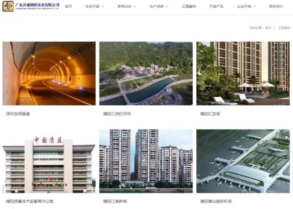 據該公司官網,深圳龍崗隧道、揭陽三洲攔河壩、揭陽匯龍灣、揭陽質量技術監督局辦公室樓、揭陽江南新城、揭陽潮汕國際機場等工程項目均曾將開盛實業列為供貨商。