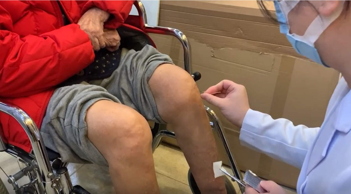退化性膝痛以老年患者居多,隨着年齡增長,尤其更年期後,肝腎減弱,隨之筋骨退化,作為身體最大的關節以及承受體重的地方,膝關節的問題漸漸出現,中醫對膝關節炎有針灸、推拿、中藥等治療方法,吳醫師表示:「膝關節的結構很複雜,而針灸可以直達病所,直接進入關節腔,對於紓緩疼痛、促進復原很有幫助。針灸分為針及灸,古代中醫有九種針,而現代使用毫針較多,容易操作且疼痛不大,之前有一位膝關節腫痛的伯伯,原本膝關節只能屈伸30度,經治療後可以屈伸60度,嚴重的病患可能要針十次以上。而灸指艾灸,用艾葉做成的艾柱在經絡上燃燒,有溫通經絡的作用,促進氣血,尤其適合寒症的膝關節疼痛。推拿對於膝關節軟組織的黏連或腫脹較為有效,透過按摩推鬆髕骨,減輕痛楚。以上方法都可以結合治療。」