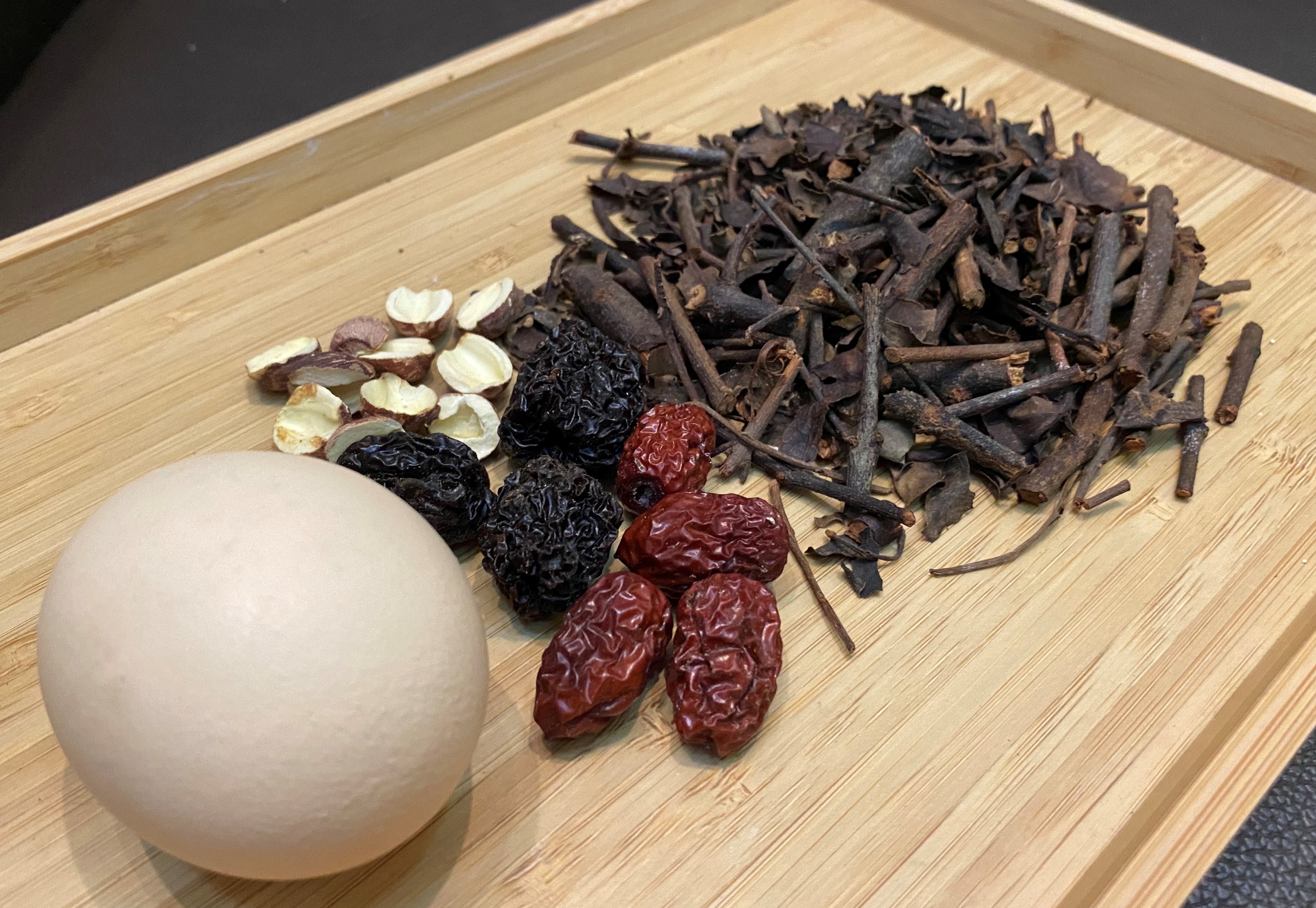 材料:桑寄生15克、開邊蓮子 12克、紅棗或黑棗15克、雞蛋1至2只。