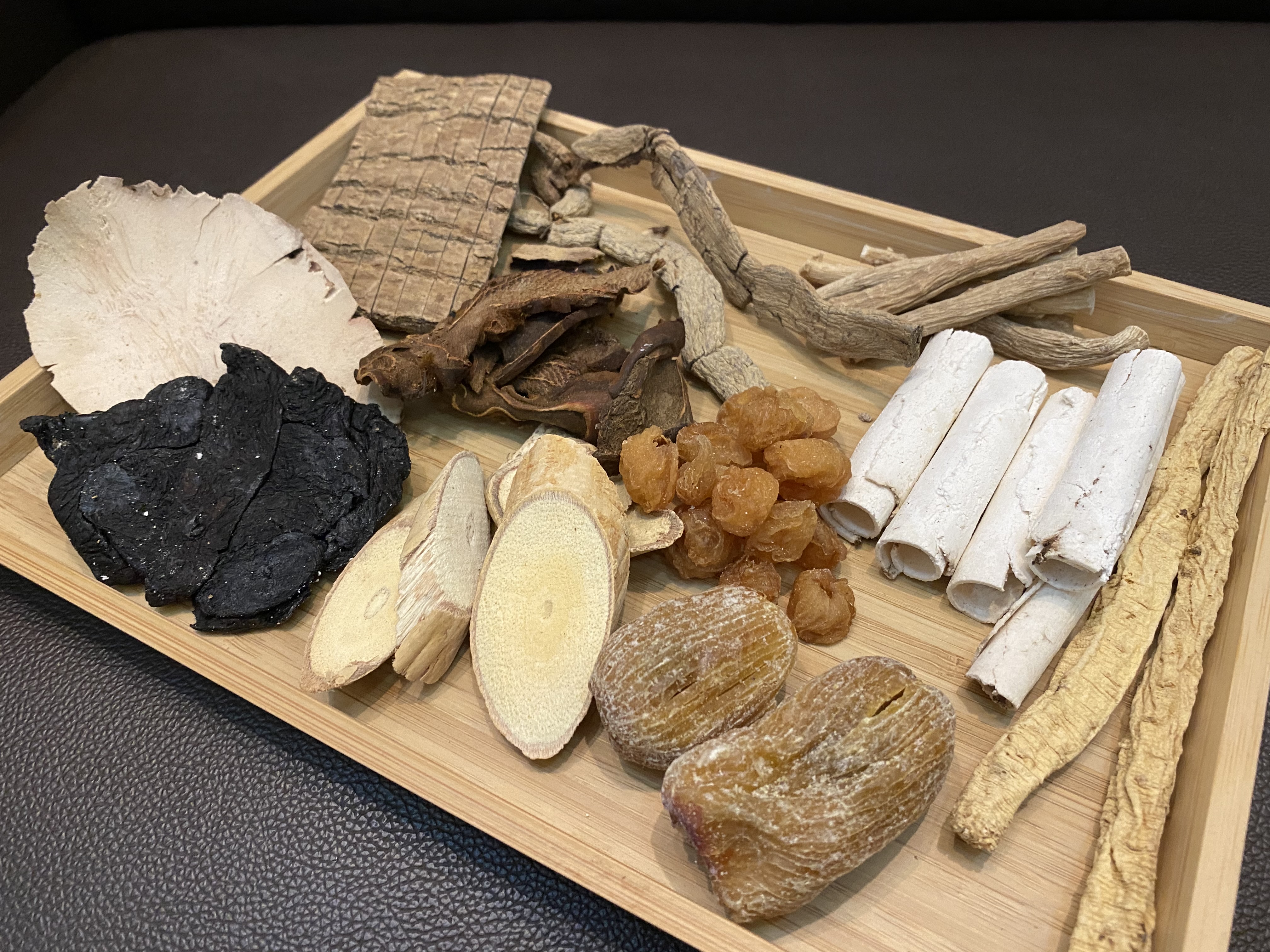 材料:土茯苓15克、茯苓15克、牛大力30克、狗脊15克、熟地15克、巴戟15克、杜仲15克、黨參15克、桂圓15克、蜜棗兩顆。