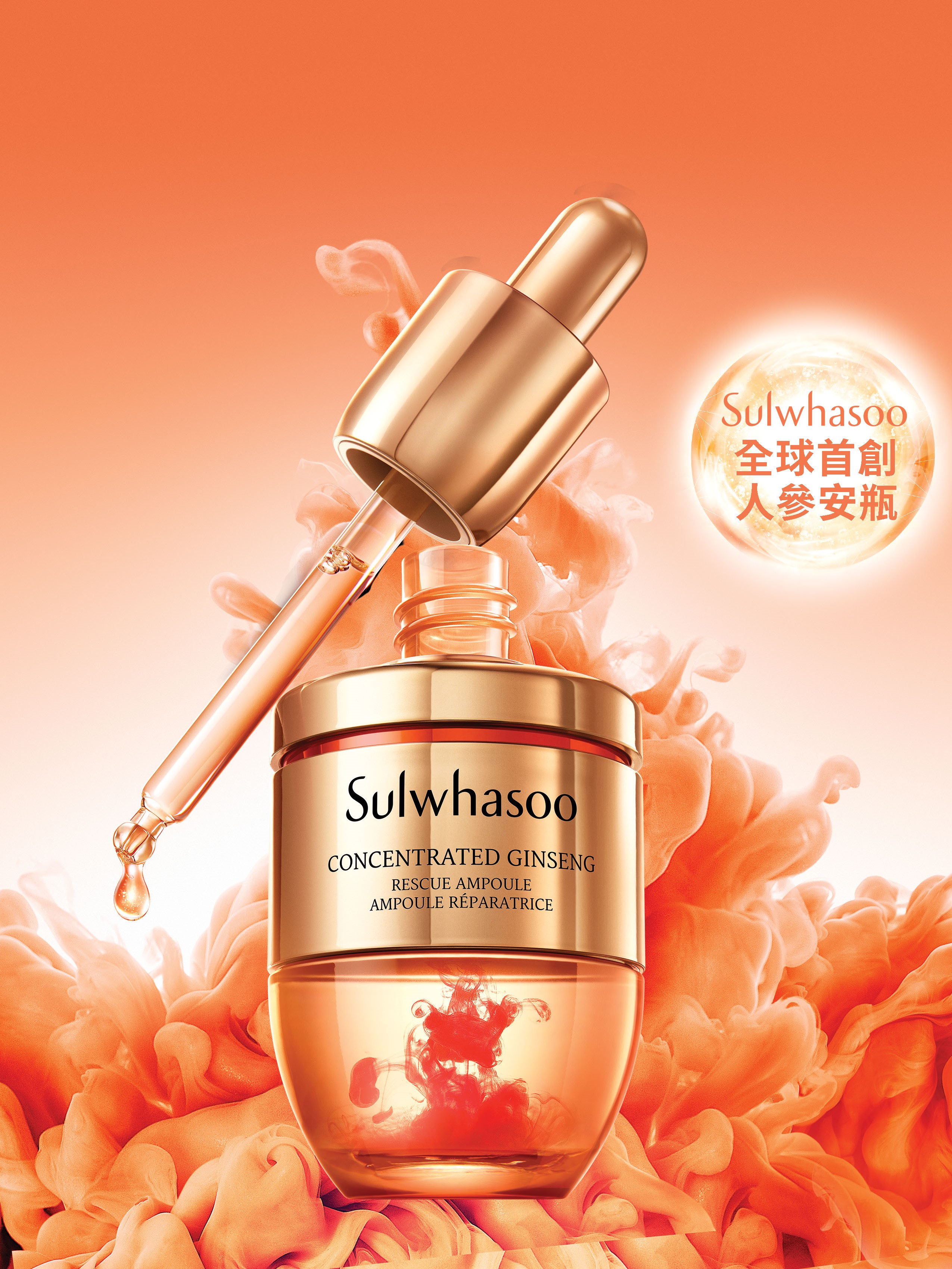 韓國護膚品牌雪花秀推出滋陰生人參煥顏高效精華液,以專利成分Ginsenomics 6000倍人參精萃與抗炎人參莓果萃取,激活肌膚抗炎屏障,抵抗外來刺激。精華液質地呈凝露狀,水潤不黏膩,精華分子幼細,讓皮膚更易吸收。