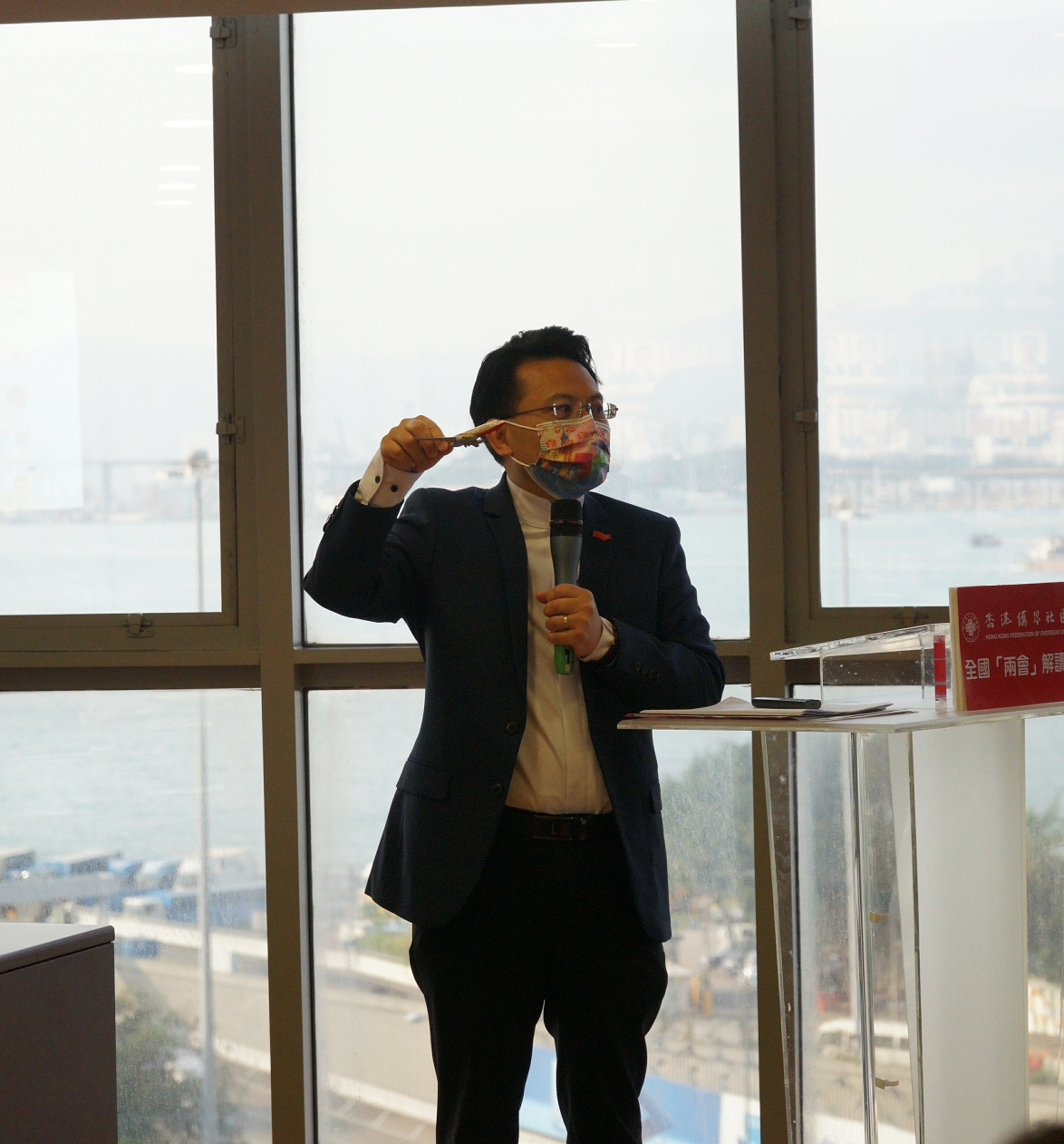 黃楚基在致辭中說,今年的兩會對香港來說意義特別重大。全國人大四次會議以高票通過完善香港選舉制度的決定,是許多香港市民共同期盼的一件大事。現階段香港面臨挑戰,他希望全體仝人集聚眾智,做好「愛國者治港」的忠實實踐者,共克時艱。