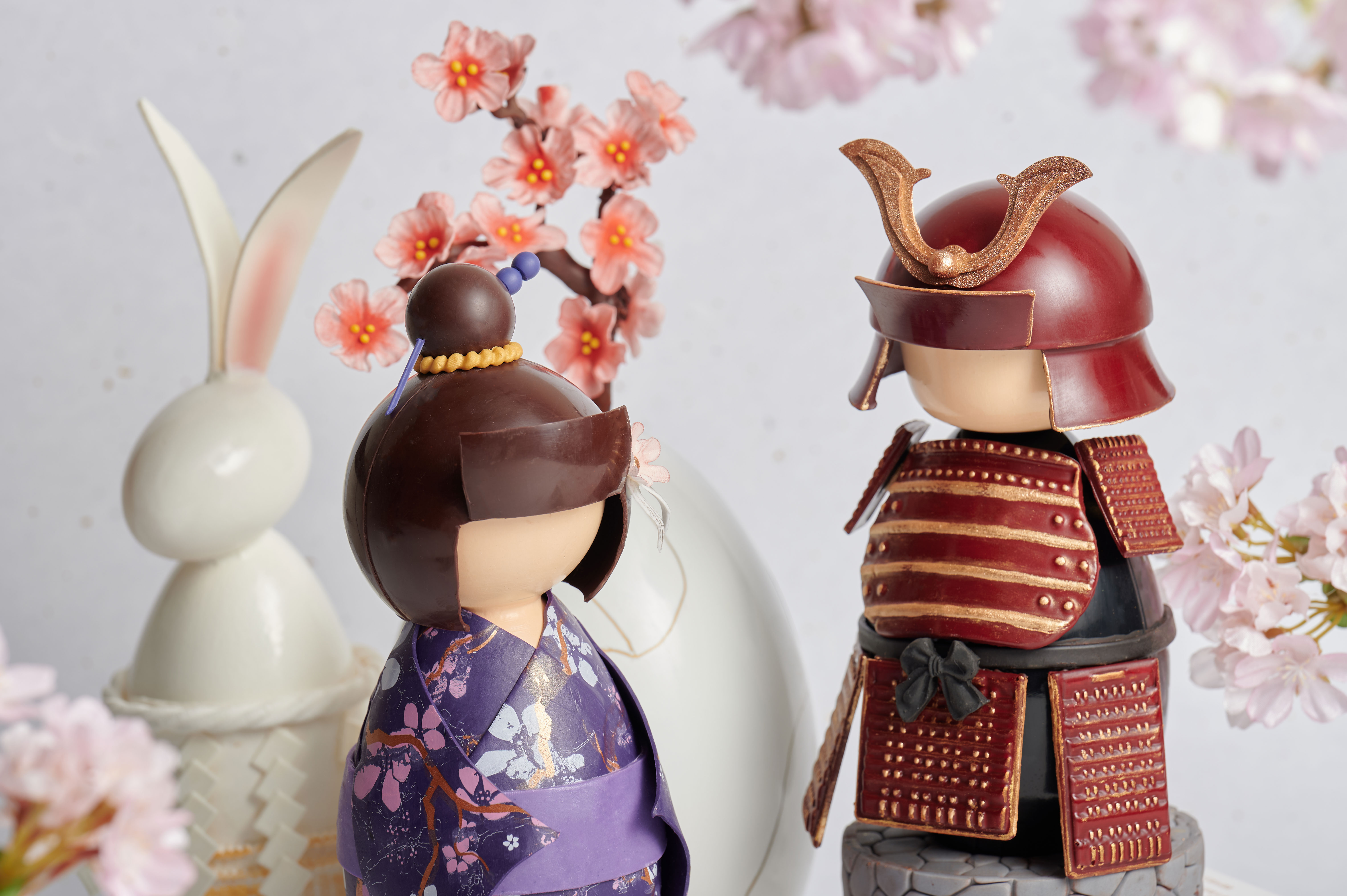 日本武士及藝伎朱古力復活蛋造型精巧細緻。