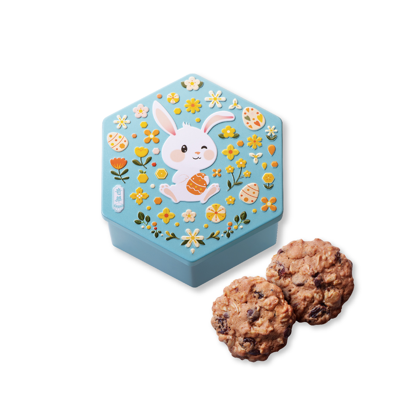 除了蛋糕和復活蛋外,曲奇都是應節甜點,奇華餅家推出活潑小白兔的罐裝禮盒,選用美國的提子乾,配搭具有高營養價值的澳洲燕麥焗製而成的「朱古力提子燕麥曲奇」,另一款趣致小雞的罐裝禮盒內則有杏仁朱古力鳥結糖。無論是買來在家吃或送給至親好友,都能讓復活節假期的歡樂升溫!(文:Karena)