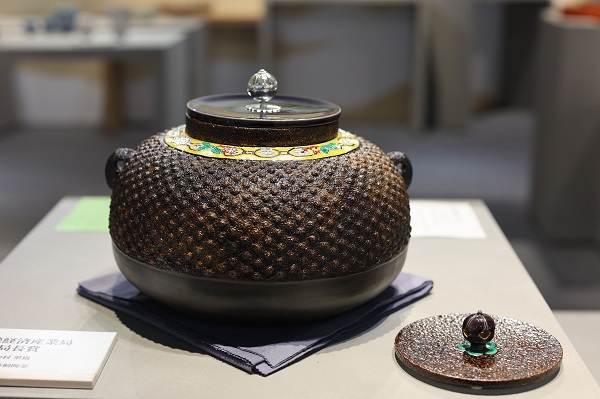 中村正機在古典陶釜的基礎造型上應用了擅長的「交趾技法」,交趾陶是一種低溫彩釉軟陶,以亮麗的色彩及豐富的變化著稱,故亦有「寶石釉」之美譽。展品榮獲京都舉行2020「京燒・清水燒展」近畿經濟產業局局長賞獎項。