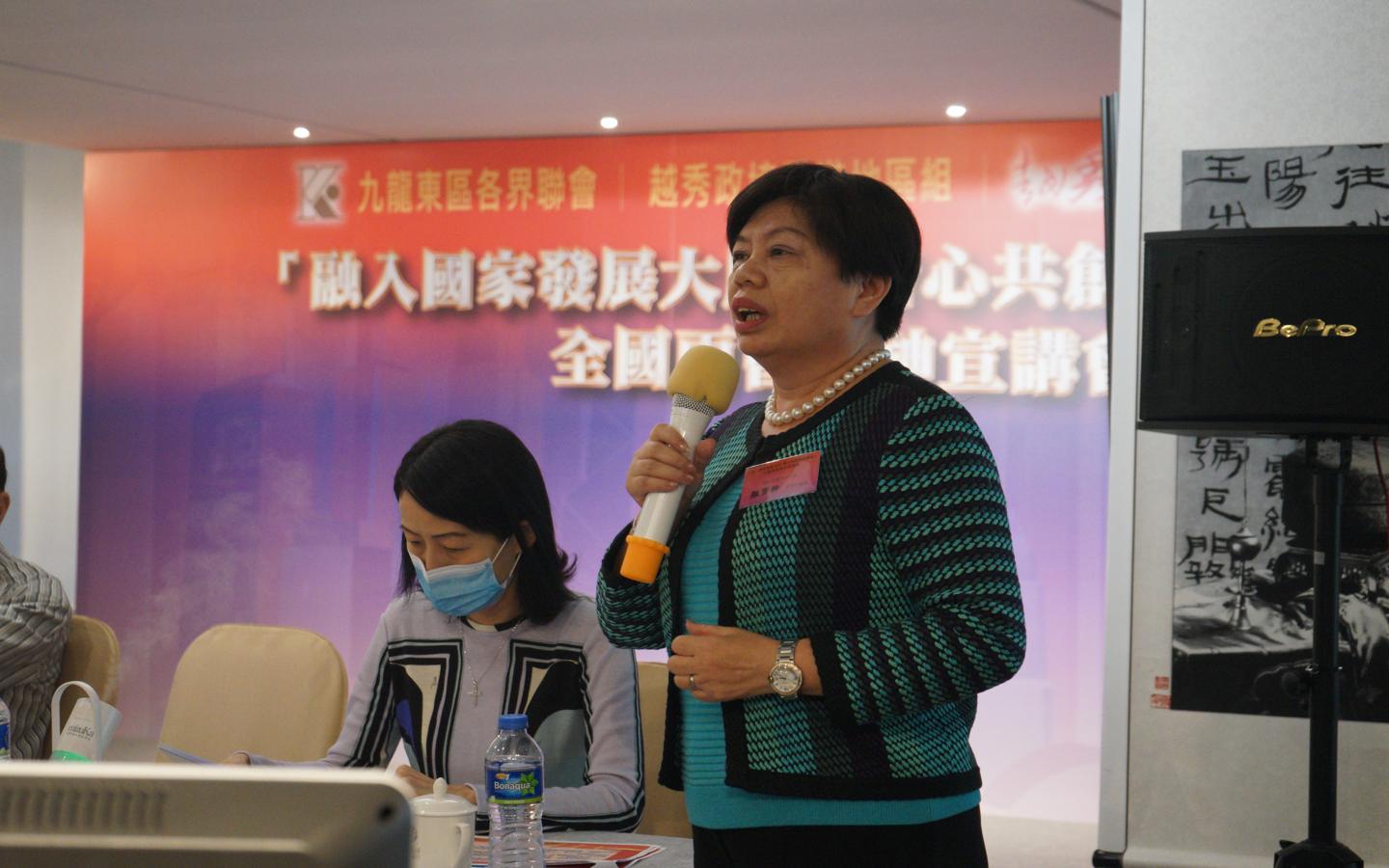 九龍東區各界聯會(東聯)、香港越秀各界聯合會和廣州市越秀區政協日前假香江國際大廈共同舉辦「融入國家發展大局·齊心共創輝煌香港」全國兩會精神宣講分享會。活動採用線上線下的方式在香港、廣州同步舉行,分享會由東聯會長李誌峰主持,並邀請全國人大代表顏寶鈴,全國政協委員楊莉珊分享兩會心得。