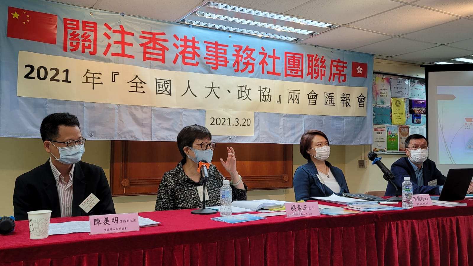 關注香港事務社團聯席日前假灣仔香港華人革新協會會所舉行2021年兩會匯報會。全國人大代表蔡素玉和全國政協委員、立法會議員李慧琼一起分享兩會心得,傳遞兩會精神。匯報會共有22個香港社團及機構派出代表參與,包括寶石事務促進會、香港華人革新協會、香港行政管理文職人員協會、勁松聯誼會、中華文化傳播促進會、六藝文化創意促進會、中華.育華校友會、文娛會、亞太法律協會、姿采藝苑、華革社區服務團、華革文康體藝促進會、卓師會、香港偵探總會、華夏大中華文化藝術協會、香港國情港事評論社、華商報聯誼會香港聯絡組、香港圖書文具業商會、香港抗戰歷史研究會、灣仔社區聯會及香港島各界聯合會。