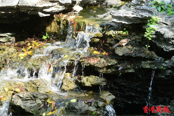 在嶺南之風園區,大門掛有多副對聯,大廳及房間擺有舊式桌椅;在水池附近,有石雕、陶塑及灰塑等建成的涼亭,旁邊一條小溪流水淙淙,不時有鳥兒飛到這溪流飲水,歇歇後再飛。
