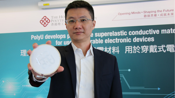 香港理工大學(理大)研發的高透氣的超彈性導電材料於權威期刊《Nature Materials》上發表。該材料適用於供長時間穿戴的電子設備。此一創新導電材料以涂抹或印刷方法,把液態金屬物料加於以靜電紡絲程序製成的彈性纖維網上,不但透氣度高、彈性強、能導電且導電穩定性高,可廣泛應用於健康監測設備、軟件機械人和貼在皮膚上的電子裝置。