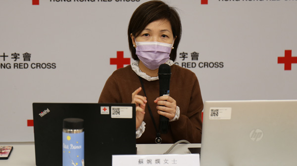 香港紅十字會行政總裁/秘書長蘇婉嫻女士鼓勵市民「每日傾傾三分鐘」,每天花三分鐘時間,找一個對象致電或發短訊關心他們,一起建構社區抗疫網絡。