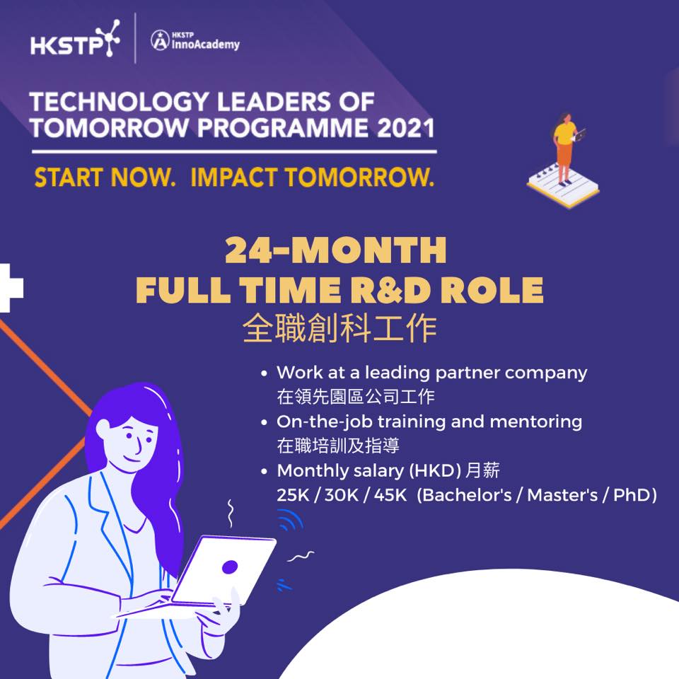 TLT計劃經已開始接受報名,歡迎有志投身創科界的近屆大學畢業生申請,共同開拓創科未來。計劃歡迎主修科學系、工程學系、數學系或其他相關學科,並於近三年內畢業的大學生申請。學士畢業生的薪酬為港幣$25,000元,碩士畢業生為港幣$30,000元,而博士畢業生則為港幣$45,000元。(記者李銘欣)