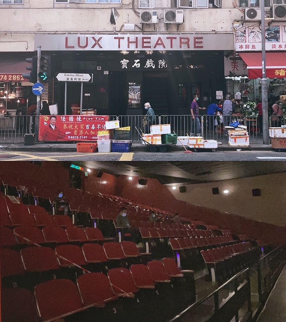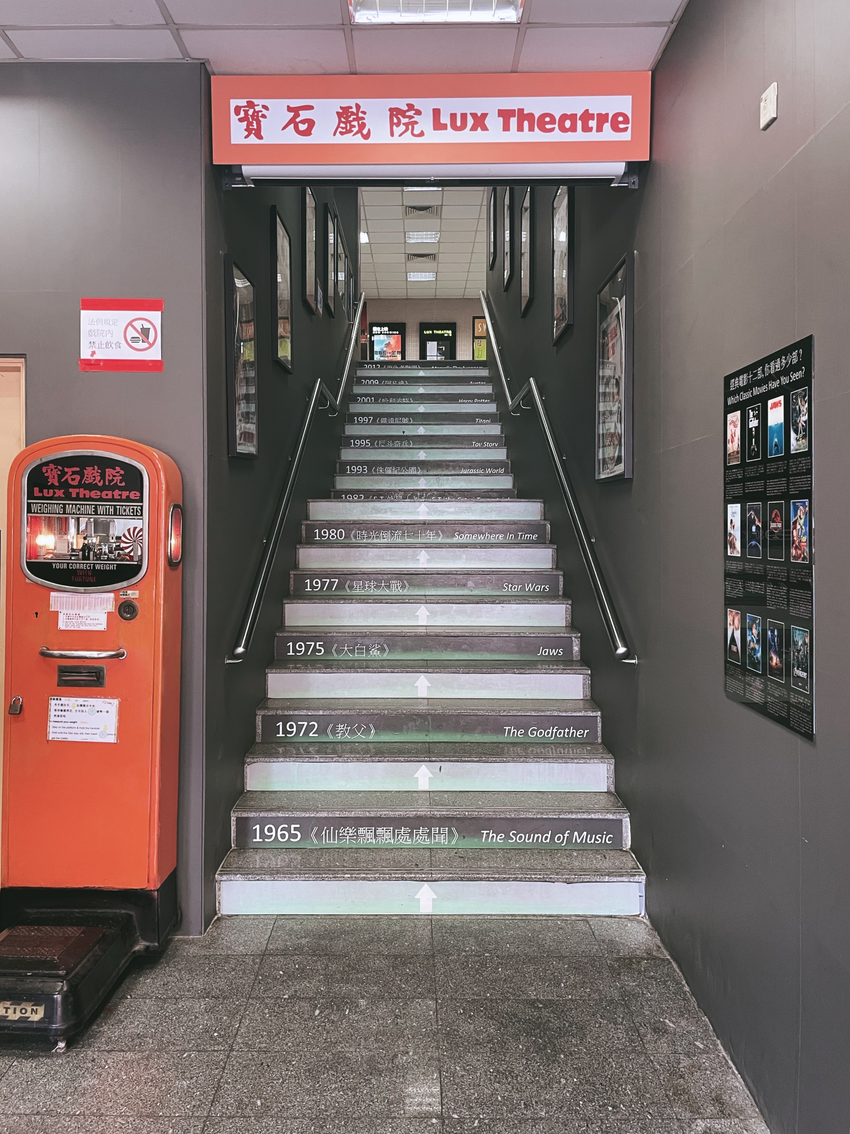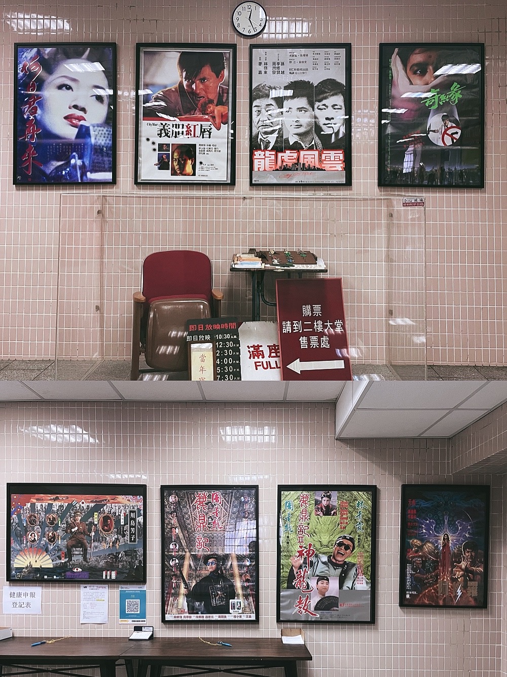①依然保留70年代傳統戲院裝修風格,以白光日光燈和雲石牆壁為主,粉色的牆壁總讓我想起 《阿飛正傳》中張曼玉短暫工作的戲院。牆上也掛著很多那個年代的電影海報,梅艷芳、張國榮、周潤發、周星馳等明星的面孔依稀可見,甚至還有許冠傑系列電影的漫畫海報,滿滿的年代感。