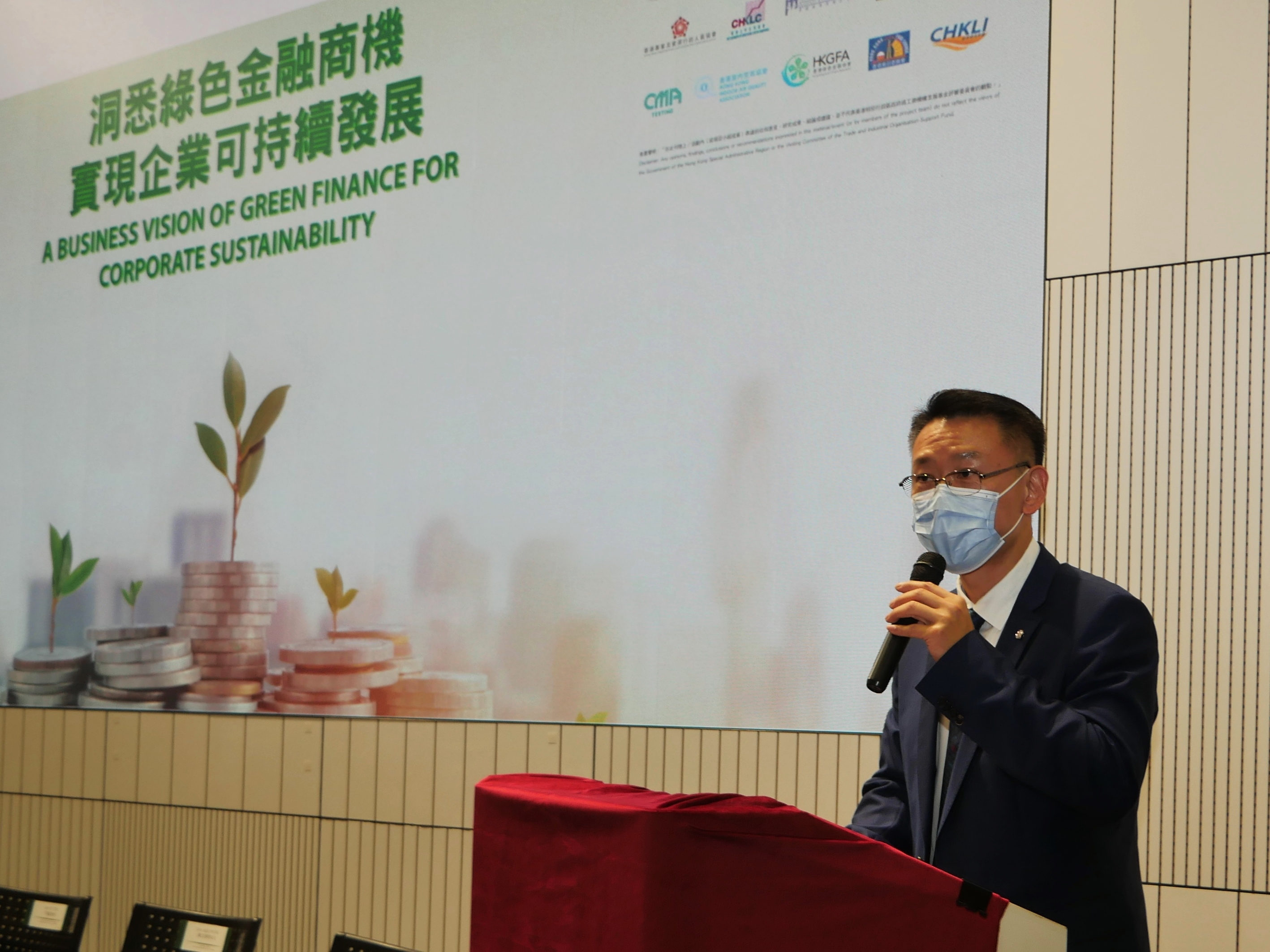 廠商會會長史立德為研討會致歡迎辭,他提到企業對綠色金融產品和綠色科技缺乏認識,未有能力準備具吸引力綠色投資計劃書,以致難以獲傳統銀行青睞;因此廠商會建立「綠色金融知識分享線上平台」,協助中小企獲得支援以進行綠色債券/借貸。