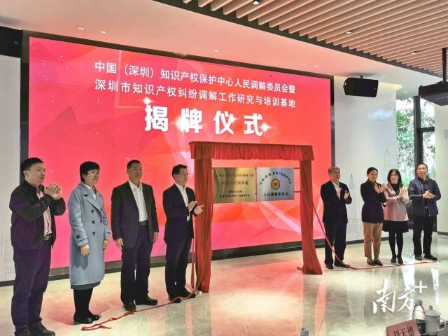 近日,中國(深圳)知識產權保護中心人民調解委員會和深圳市知識產權糾紛調解工作研究與培訓基地在中國(深圳)知識產權保護中心揭牌成立。