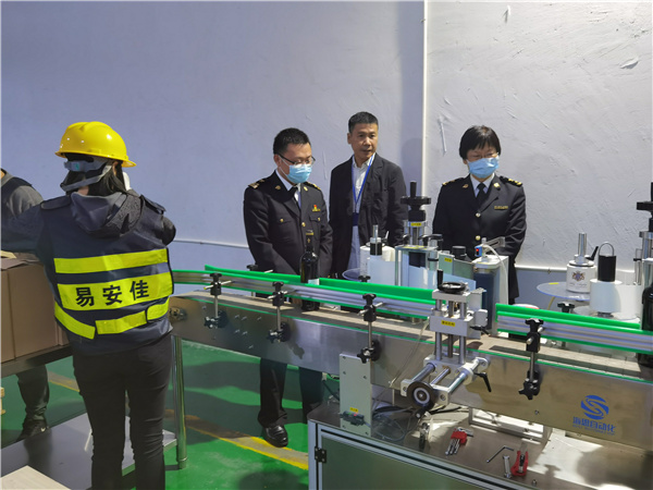 廣州海關關員在保稅倉調研紅酒簡單加工業務