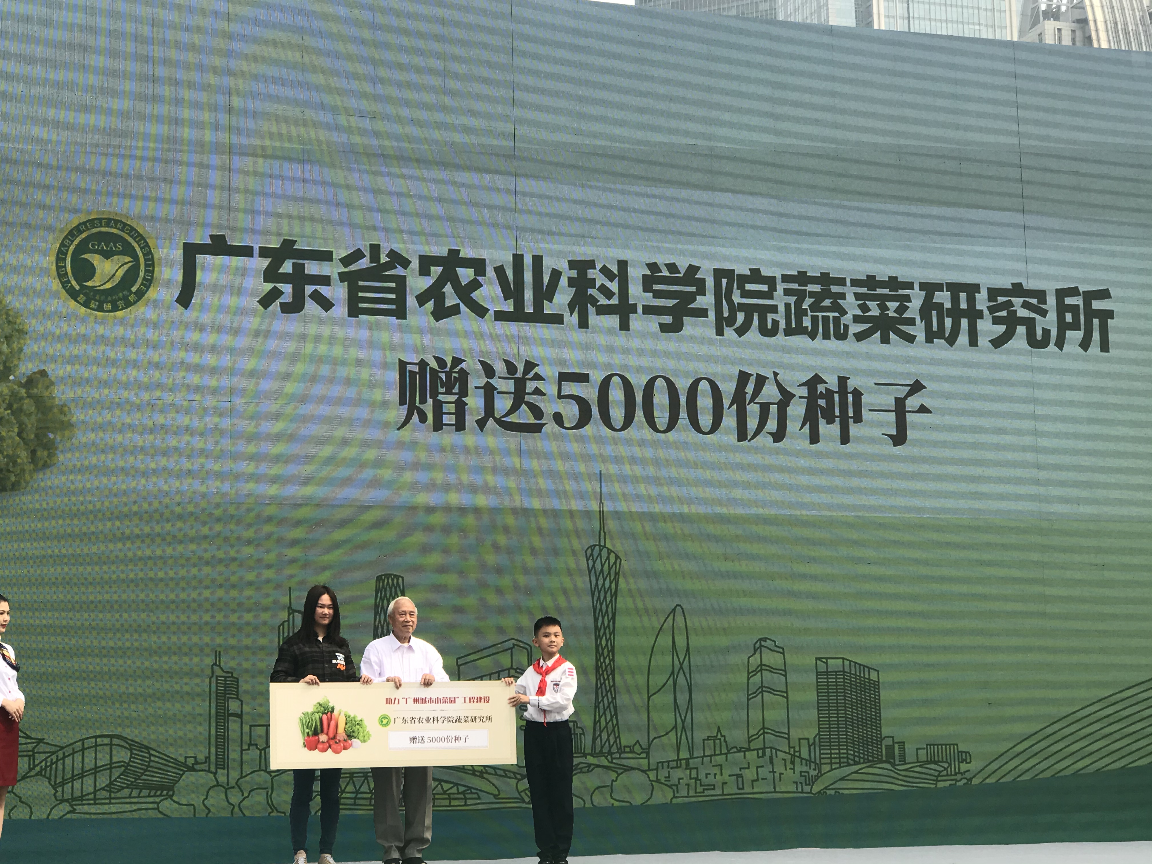 啟動儀式現場,廣東省農業相關單位和企業向市民代表和學生代表贈送種子、種苗、生物農藥等。徐紅 攝