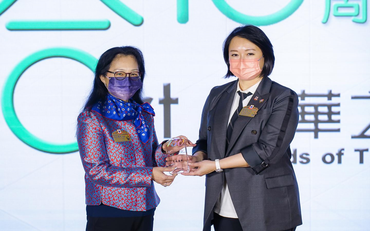 文穎怡(右)致送紀念品予陳姚麗妮。