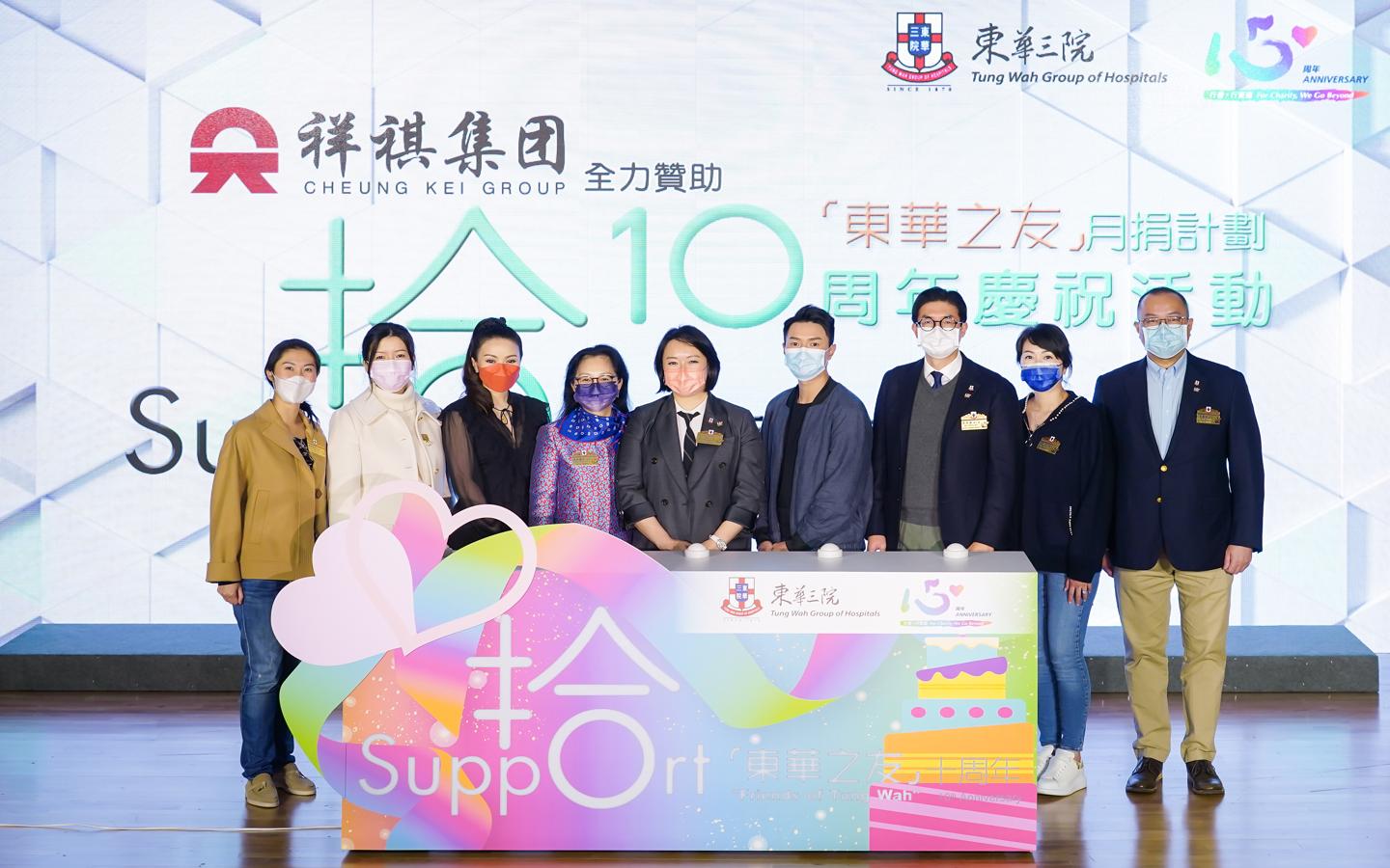 東華三院自2010年起推出「東華之友」月捐計劃,透過月捐計劃在過去10年間為東華三院提供了一筆穩定的善款,讓東華三院可以更有效地發展及策劃長遠的醫療衛生、教育、社會和公共服務,持續為受惠社群提供援助。出席的愛心歌手包括陳柏宇、JW王灝兒及葉巧霖,他們除了獻唱歌曲之外,還聯同東華三院文穎怡主席、籌委會主席暨冠名贊助人代表陳姚麗妮總理、籌委會成員馬清揚副主席、鄧明慧副主席、吳鄭雅瑜總理、諸陳慧婷總理及曾慶業總理,一同進行簡單而隆重的10周年慶祝儀式,並聯同其他董事局成員及行政總監參與多個別開生面的遊戲,一起在歡樂氣氛之中為「東華之友」月捐計劃呼籲。此外,已經擔任「東華之友」月捐計劃「星級榮譽大使」10年的楊千嬅亦以視像錄影分享感受。