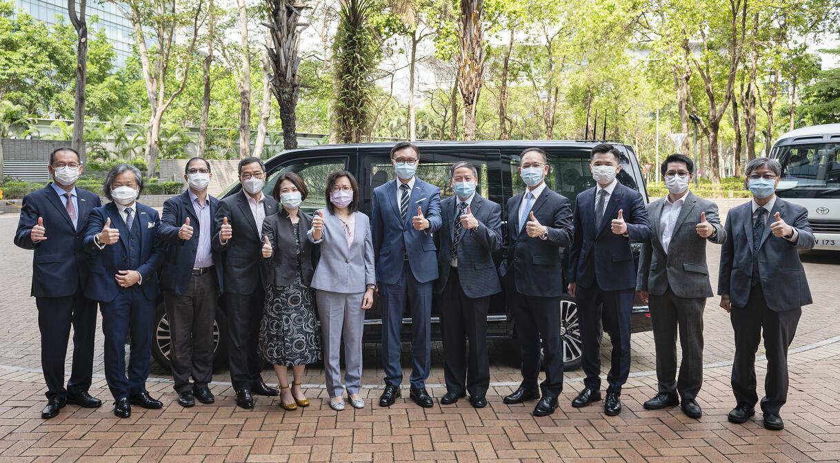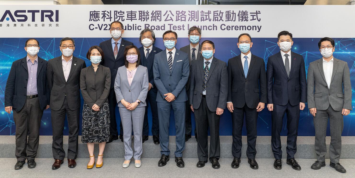 創新科技署署長潘婷婷、運輸署助理署長羅慶新、應科院董事局主席李惠光、首席營運總監司徒聖豪、首席科技總監許志光、副總裁(通訊技術)莊哲義及項目合作夥伴出席了車聯網公路測試啟動儀式,一眾嘉賓更獲邀登上測試車輛,親身感受車聯網為道路使用者帶來更安全、更可靠及更便利的體驗。