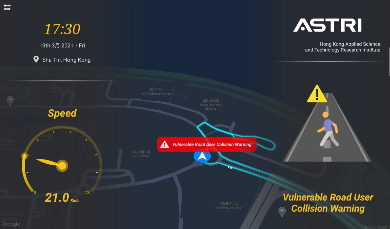 應科院会演示「行人過路警示」——預早提醒駕駛者,避免車輛因視線被遮擋而未能發現行人過路。