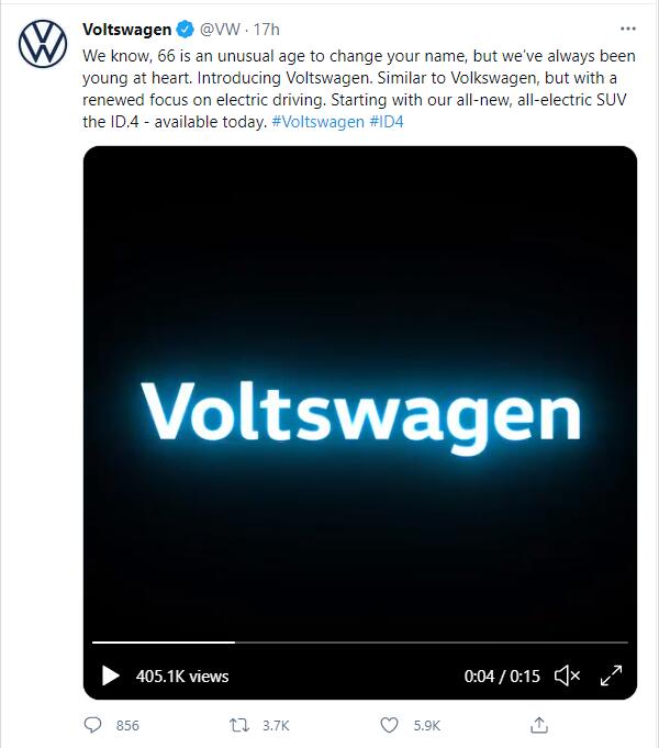 福士汽車發言人在聲明中表示,福士汽車不會改名為「伏特士」汽車。宣布改名是為了在愚人節逗笑消費者,來宣傳新推出的ID.4新款純電動汽車。