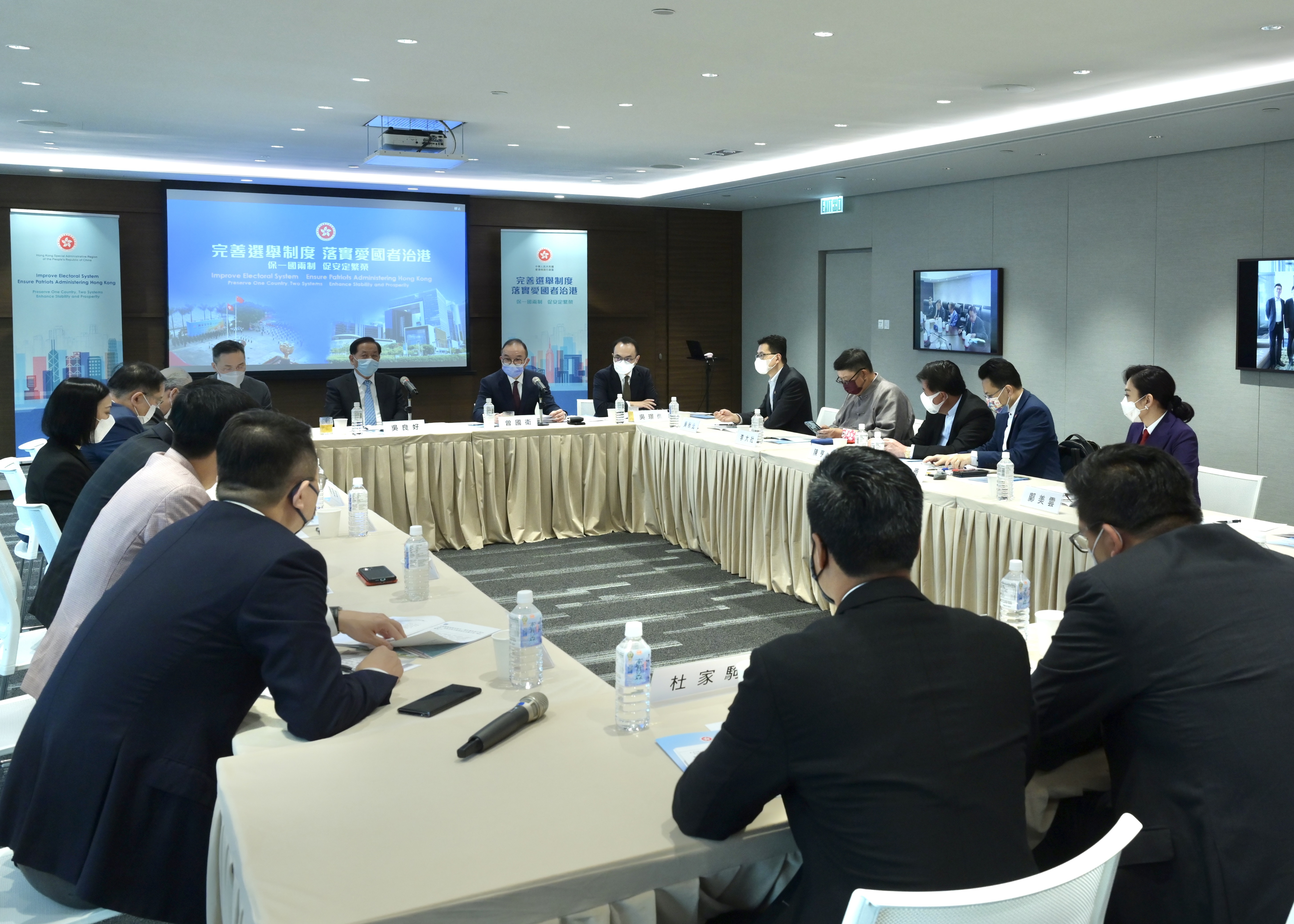曾國衞首先向出席的代表和委員詳細解釋這次完善選舉制度的背景。他說新的選舉制度其中一個重要原則是增強選舉委員會(選委會)和立法會的代表性,擴大香港社會均衡有序的政治參與,維護香港社會整體利益和根本利益。中央主動從國家層面完善香港的選舉制度,目的是讓香港重回「一國兩制」的初心和正軌。只有做到「愛國者治港」,各種深層次問題才能得到有效解決,香港才能實現長治久安。