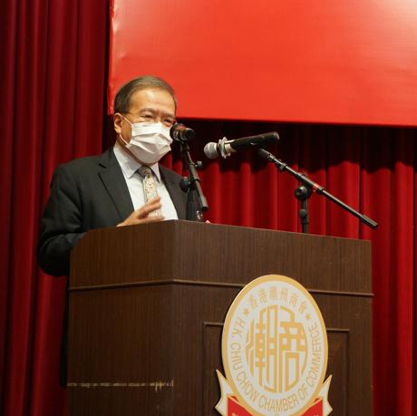 會長黃書銳致辭時表示,「愛國者治港」原則不容置疑,愛國者治港,可堵塞香港特區現行選舉制度存在的漏洞,防止別有用心人士通過立法會和區議會議事平台,阻撓香港特區政府依法施政。他認為選舉制度是政治體制的重要組成部分,有關選舉制度的「決定」是合憲、合法、合理的。潮州商會特別在兩會期間發起聯署聲明,支持全國人大行使權完善香港選舉制度的決定。