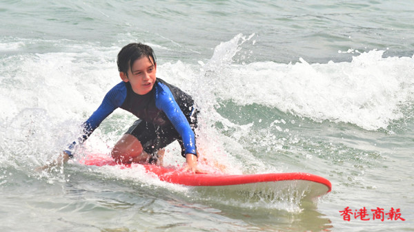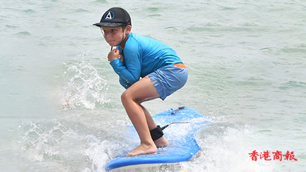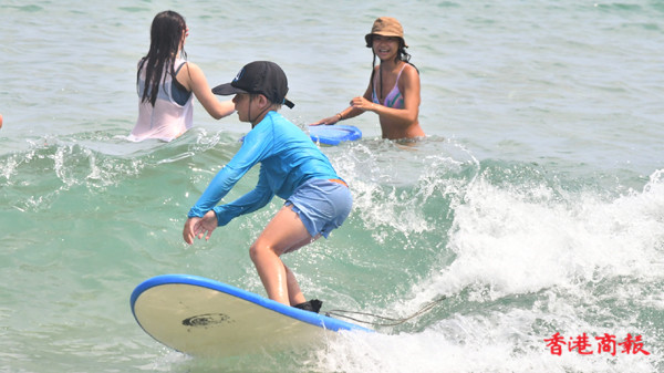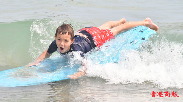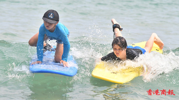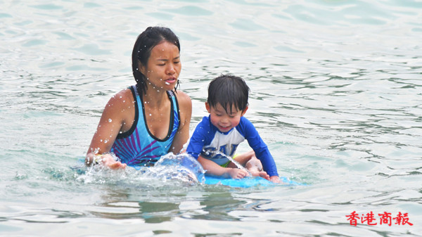 香港新冠肺炎疫情和緩,不少公共設施開放,包括康文署轄下的15個海灘亦在今日(2日)重開,並設有救生員服務,吸引不少一家大小前往消消暑、透透氣。雖然還沒到夏天,在港島大浪灣已有不少市民享受陽光海風,除了游泳人士外,也有不少市民到來滑浪,這個時候的海浪不算大,適合初學者及小朋友玩,嘗試一下踏浪而來的感覺。(記者 馮瀚文攝)