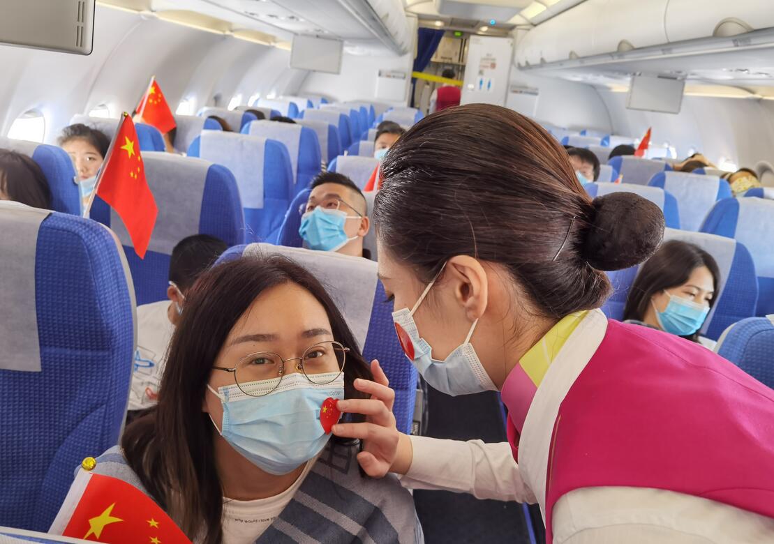 一首歌曲《我和我的祖國》將活動推上高潮,旅客們手舉紅旗,共同高聲歌唱。領唱的乘務員是本次航班中的帶飛學員,第一班飛行就參與到本次活動中,她說:「第一班飛行就可以參與到這麼有意義的活動中,感謝師父的信任,給自己的職業生涯一個美好開始。目前是一名預備黨員,今天戴上金燦燦的黨徽,心情無比激動,也感到無比光榮!接下來的帶飛,我更要好好學習,完成好每一次航班任務,不負黨和組織對我的期望,不負師父的信任和教導。」