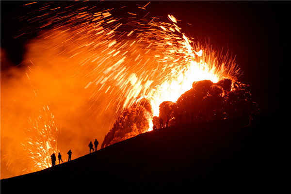 冰島雷克雅內斯半島的蓋爾丁達盧爾火山爆發奇觀。