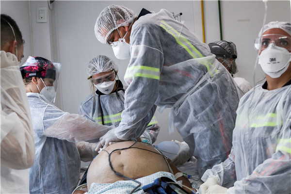 巴西聖貝納多•多•坎波,急救人員正在搶救一名疑似感染COVID-19的患者。
