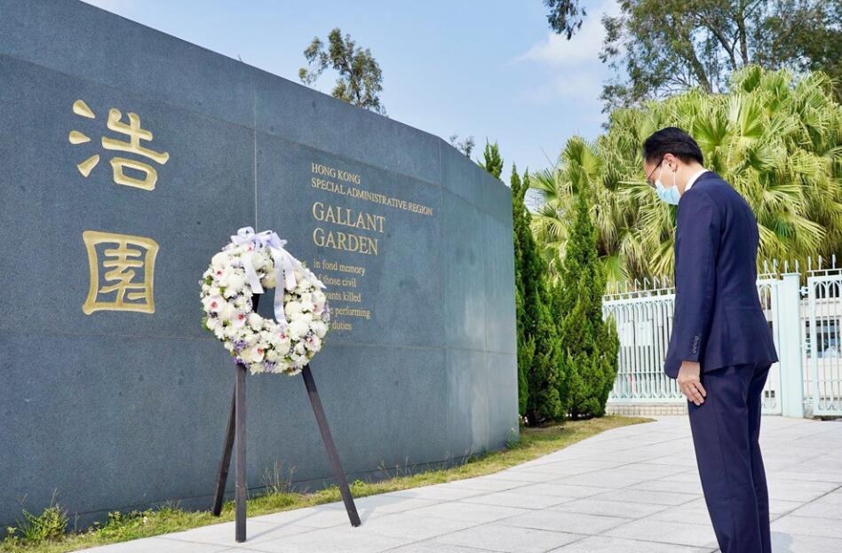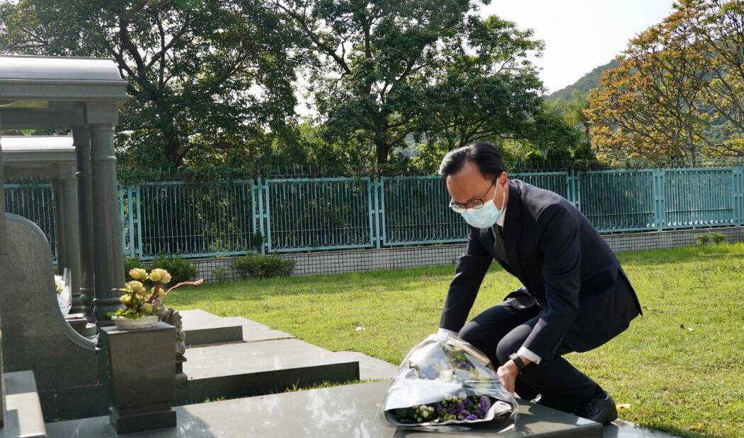 明日就是清明節,公務員事務局局長聶德權代表特區政府,今日(3日)到和合石「浩園」,悼念73位殉職公務員,表達哀思。