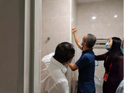 針對此問題,轄區人大代表高度重視,本着履職盡責,為民辦實事、謀福利的態度。3月31日下午,區人大代表劉海波、黃迎春、黃晃銀對坪山區婦幼保健院住院部綜合樓進行視察調研。調研中發現群眾反映的問題屬實,此外,還發現了其他問題:一是走廊牆麵粉飾不過關,嚴重脫粉;二是天花吊頂質量堪憂,存在裂開現象;三是牆體部分脫落明顯。