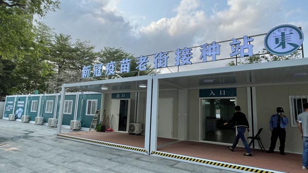 4月2日,位於深圳市羅湖區東門老街深圳戲院前迎賓廣場的「新冠疫苗老街接種站」正式向民眾開放,這是羅湖區目前面積最大的一個新冠疫苗臨時接種站。