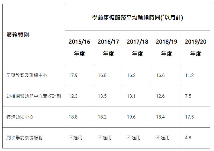 不過,康復服務中的宿舍服務輪候時間十分長,嚴重肢體傷殘人士宿舍服務更是多年來輪候時間最長之一。雖然2019/20年的輪候時間,已由2018/19年的168個月,減至123.6個月,但仍要等候超過10年。至於嚴重及中度弱智人士宿舍服務,仍需分別輪候160.5個月,及144.3個月。