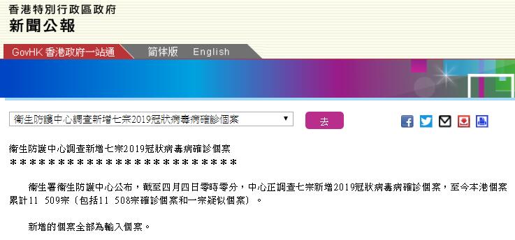 衞生署衞生防護中心公布,截至今日(4日)零時零分,本港本地零確診,新增7宗確診個案全部都是輸入的無症狀感染者。