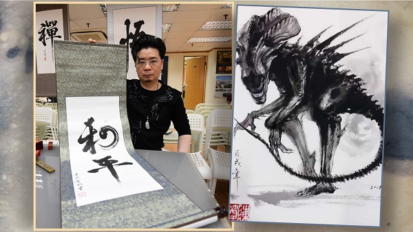 水墨畫風的「異形之後」(右)為陳笑洛帶來另一片天地。