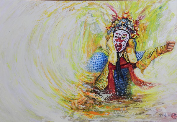 陳笑洛為了今次訪問,特別繪畫齊天大聖彩繪新作。