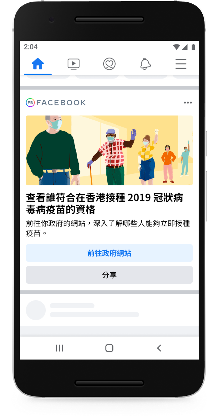 隨着新冠疫苗的推出,大眾對疫苗接種資格和預約報名的程序存有許多不同的疑問。為了幫助大眾了解更多有關疫苗的資訊,Facebook 將在本周內於「動態消息」推出公共服務公告,該公告將會為用戶提供當地衛生組織的最新資訊,包括有關疫苗接種資格以及預約接種疫苗的相關資訊。