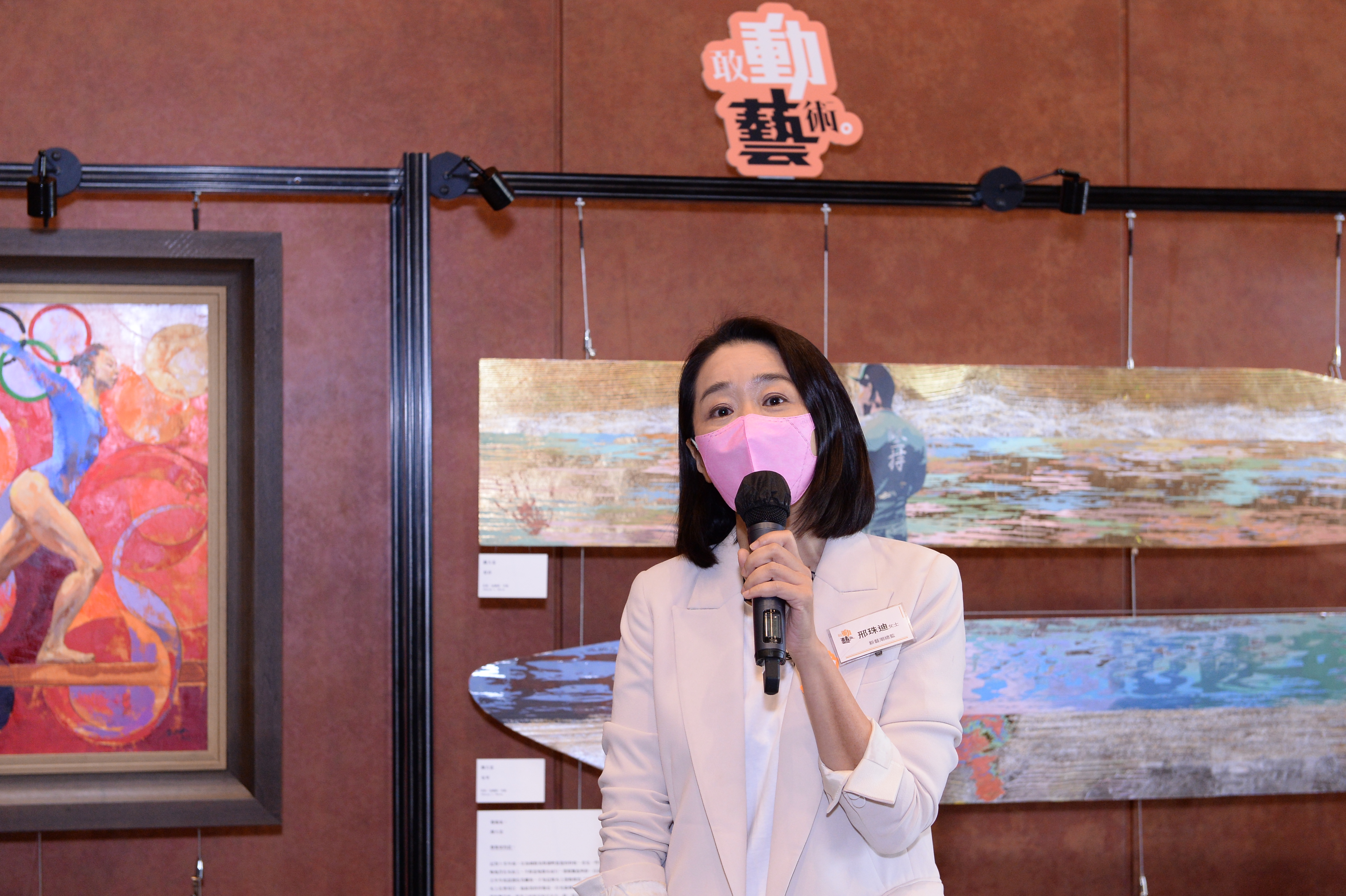 中國香港體育協會暨奧委會副會長霍啟剛表示,藝術家與運動員一樣需要堅毅不屈及追求突破的精神,兩者都非常值得尊敬。希望通過一系列的展覽、分享和交流,拉近公眾對本地體壇及藝壇的關注。他亦表示全家都非常支持體育事業,並透露周末會和家人一起踩單車。郭晶晶身著紅裙狀態極佳,她講到自己從去年新冠疫情爆發開始就沒有回老家河北,聽聞擴大『回港易』,推出『來港易』的計劃,她也非常高興,希望能早點通關,能夠和老家親人見面。