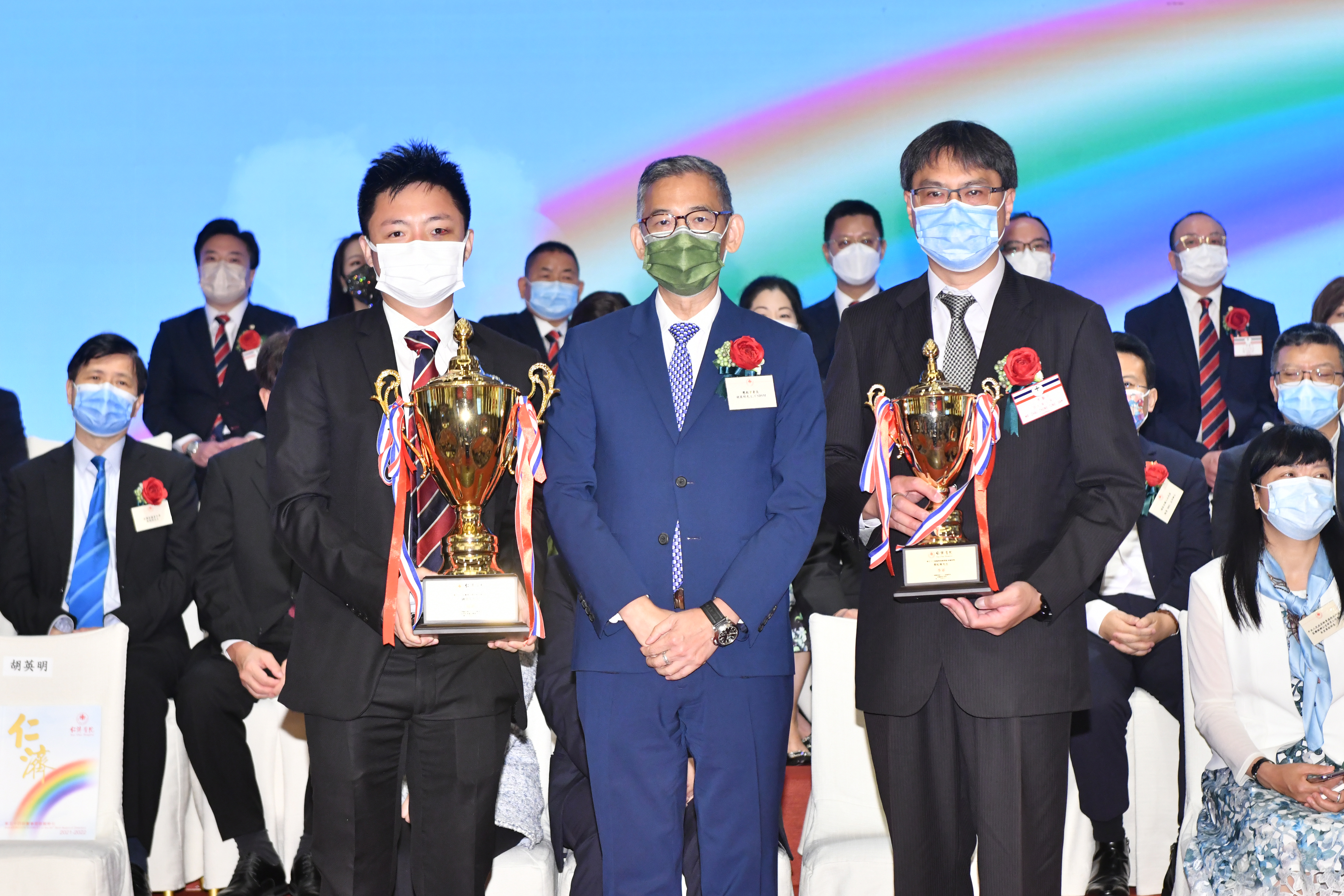 懲教署署長胡英明頒發第53屆董事局全年「最高籌款奬」予冠軍鍾培生及季軍周松東。