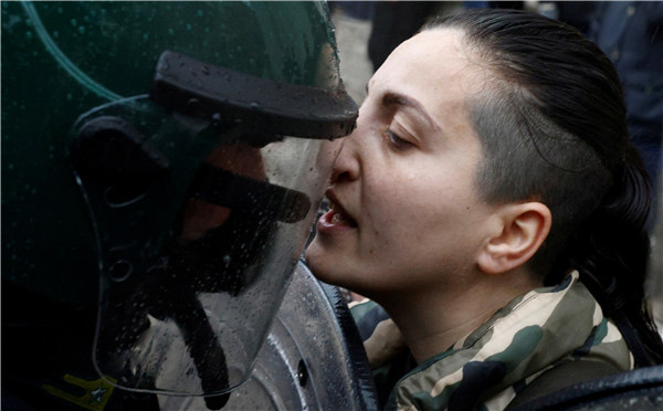 意大利羅馬,一名示威者在一場餐館和小企業主的抗議中與警察對峙,他們呼籲允許企業重新開業,該場抗議沒有獲得政府的示威授權。