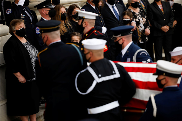 4月2日陣亡的美國國會警察威廉•埃文斯的靈柩被抬進國會大廈,他的家人參加了在華盛頓舉行的紀念儀式。