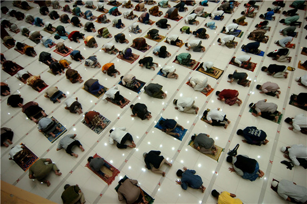 印度尼西亞中爪哇省蒂格爾的清真寺重新開放,穆斯林男子在齋月前祈禱時保持社交距離。