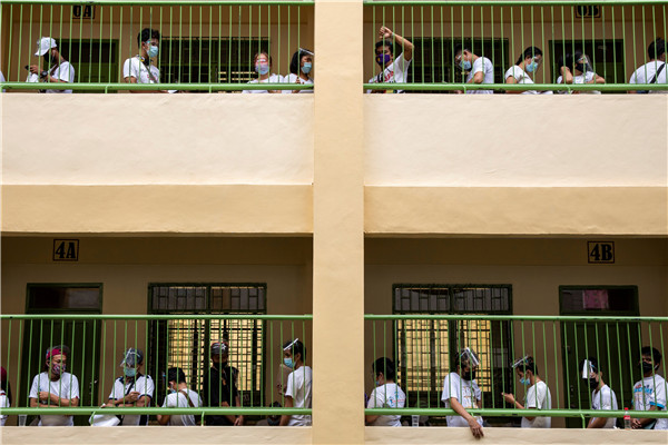 菲律賓新冠肺炎病例不斷增加,民眾工作或生計受到更嚴格限制。在大馬尼拉奎松市的一所小學,居民排隊等候接受政府的現金援助。